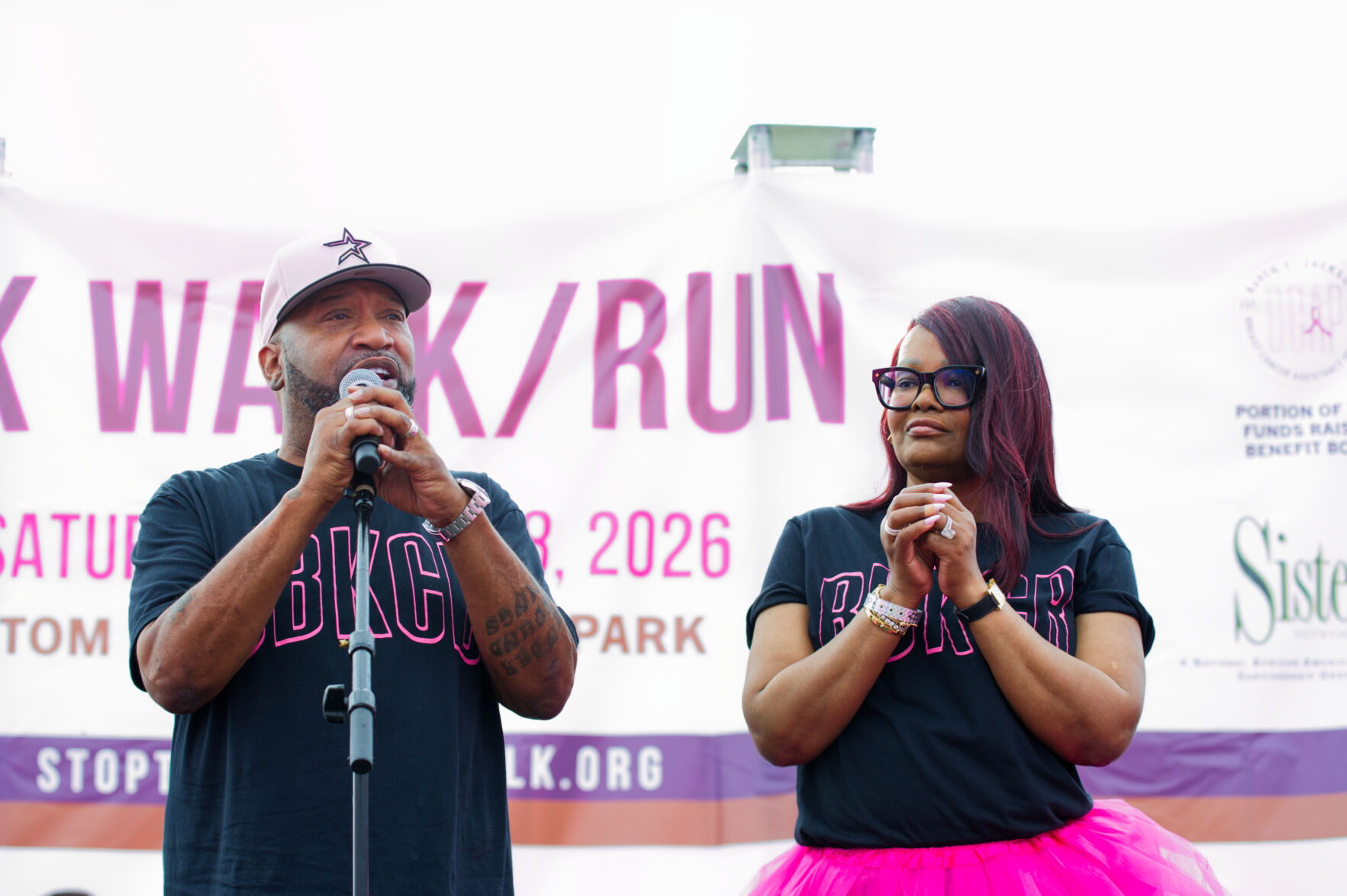 Among the voices that carried particular weight on Saturday was one belonging to a man standing next to his wife. Bun B—one half of UGK, a Houston institution, a figure whose presence at any city event signals that the moment matters—stood on that stage with Queenie beside him and spoke not as a celebrity endorsing a cause, but as a husband who had watched his wife move through Stage 2 breast cancer and come out the other side. She was cleared this past February.